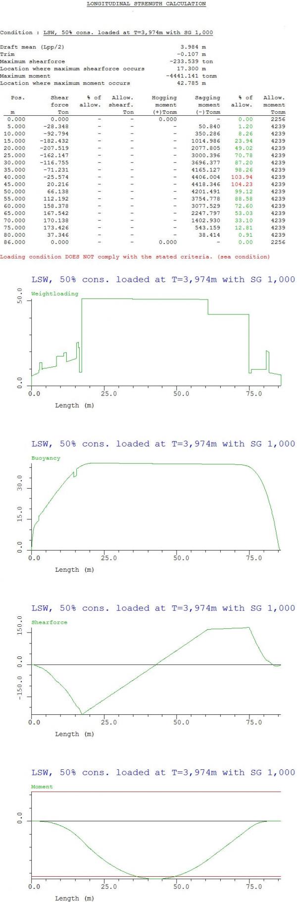 • The global longitudinal strength calculations of the vessel according class statements and applicable regulations;